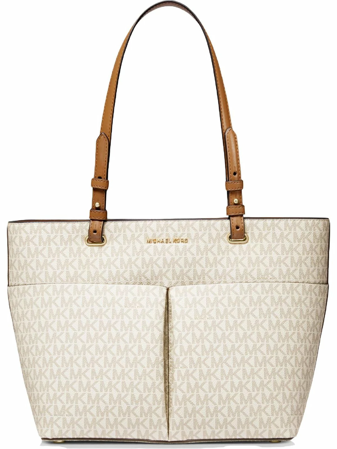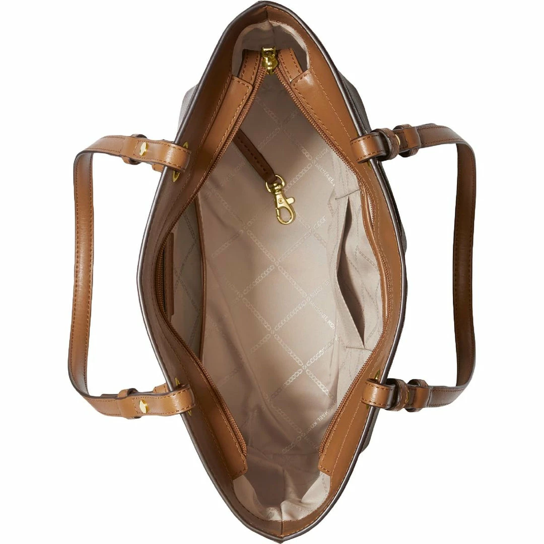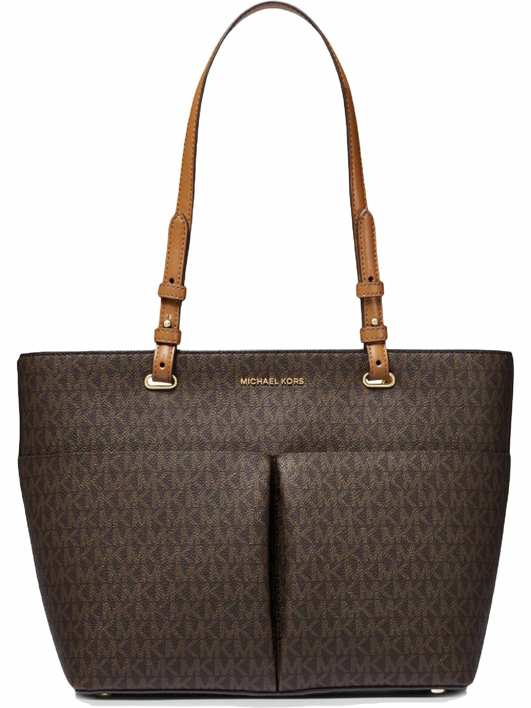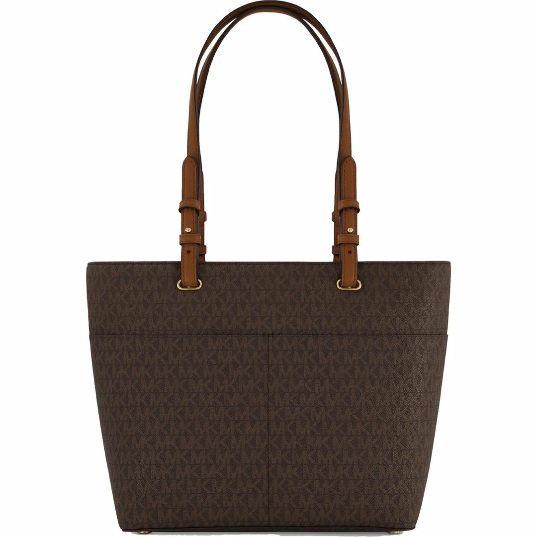 Elevate your look with the Bedford signature print tote handbag by MICHAEL Michael Kors. Crafted with coated canvas and textile linings. This roomy tote flaunts an open slip compartment, two additional front pockets, and flashy goldtone hardware. It’s functional design will make it a favorite for everyday wear or travel. Signature logo print. Sturdy double handles with a top zipper closure. 10.5″x14″x5″. This handbag is guaranteed authentic.
