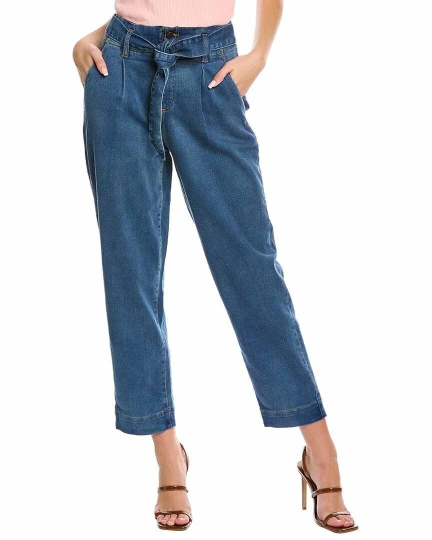 - Design Details – Faded Wash, Pleated Leg, Dual Front Angled Pockets, Dual Back Pockets, Paperbag Waist, And Self-Tie Sash At Waist